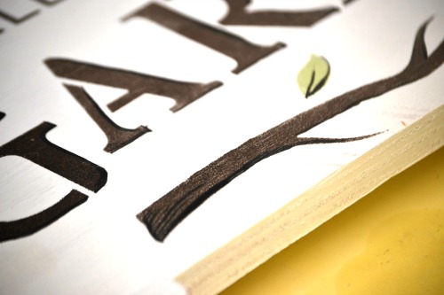 This sign was stenciled the same way but this time I added hand painted highlights to the letters and leaves to give it a different touch.